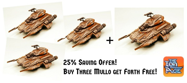 Each bundle contains FOUR identical vehicles one of which is given free meaning a saving of twenty five percent off regular release price.  All bundles will be shipped by the end of the promotional period along with any other codes ordered at the same time. If you wish to learn and see more about the Mullo please look to the single vehicle pages.  Go HERE.  30.00GBP (Value 40.00GBP!).